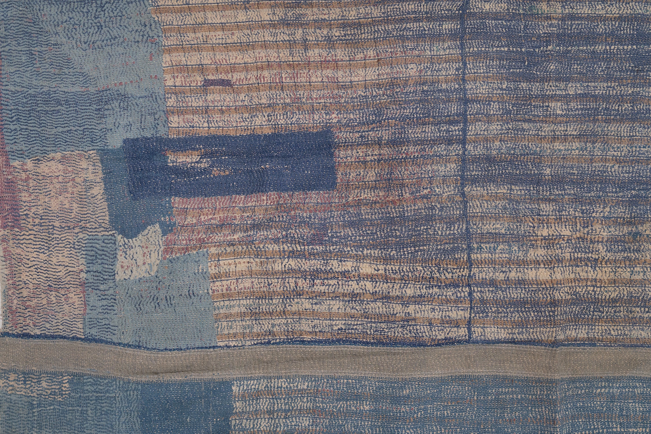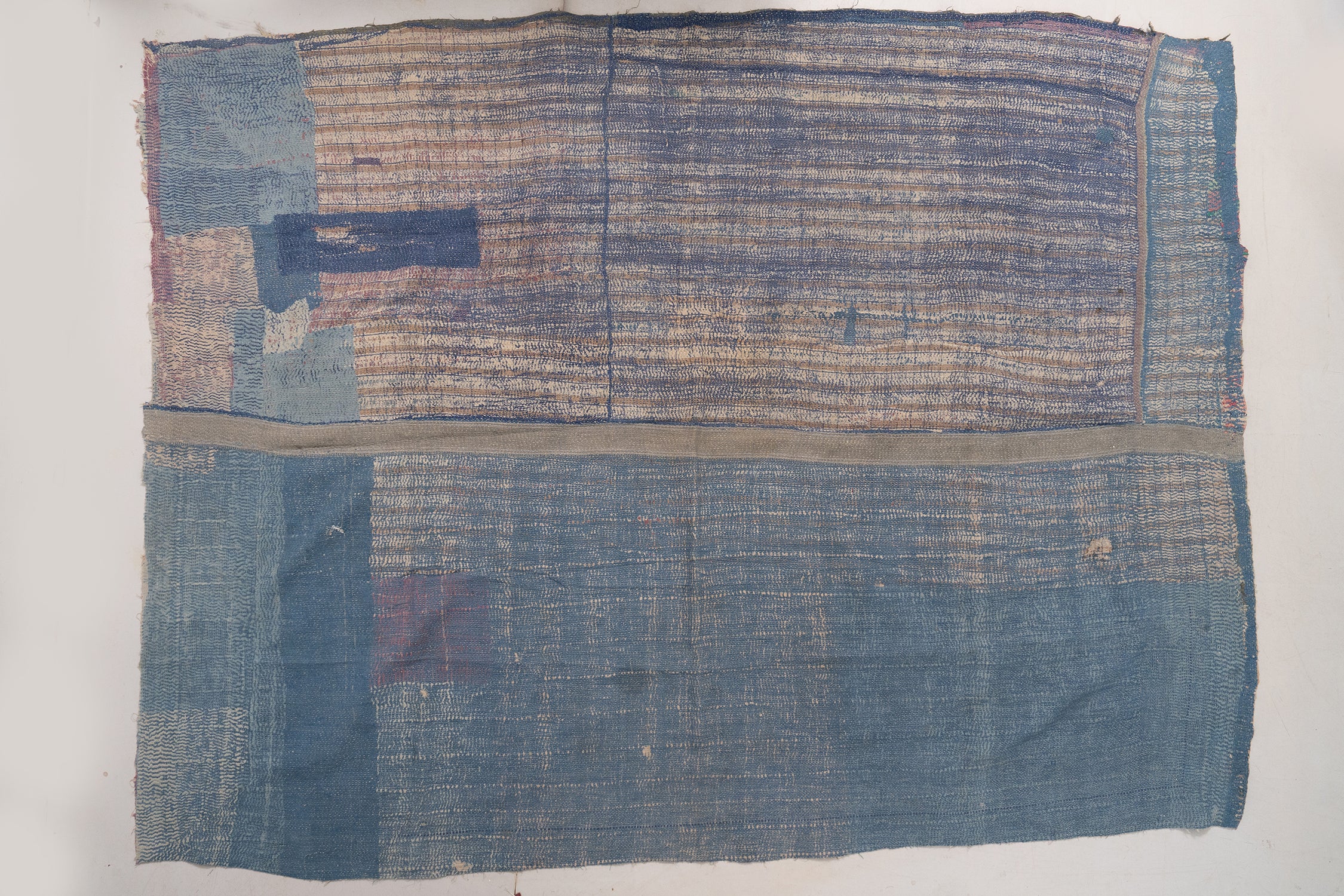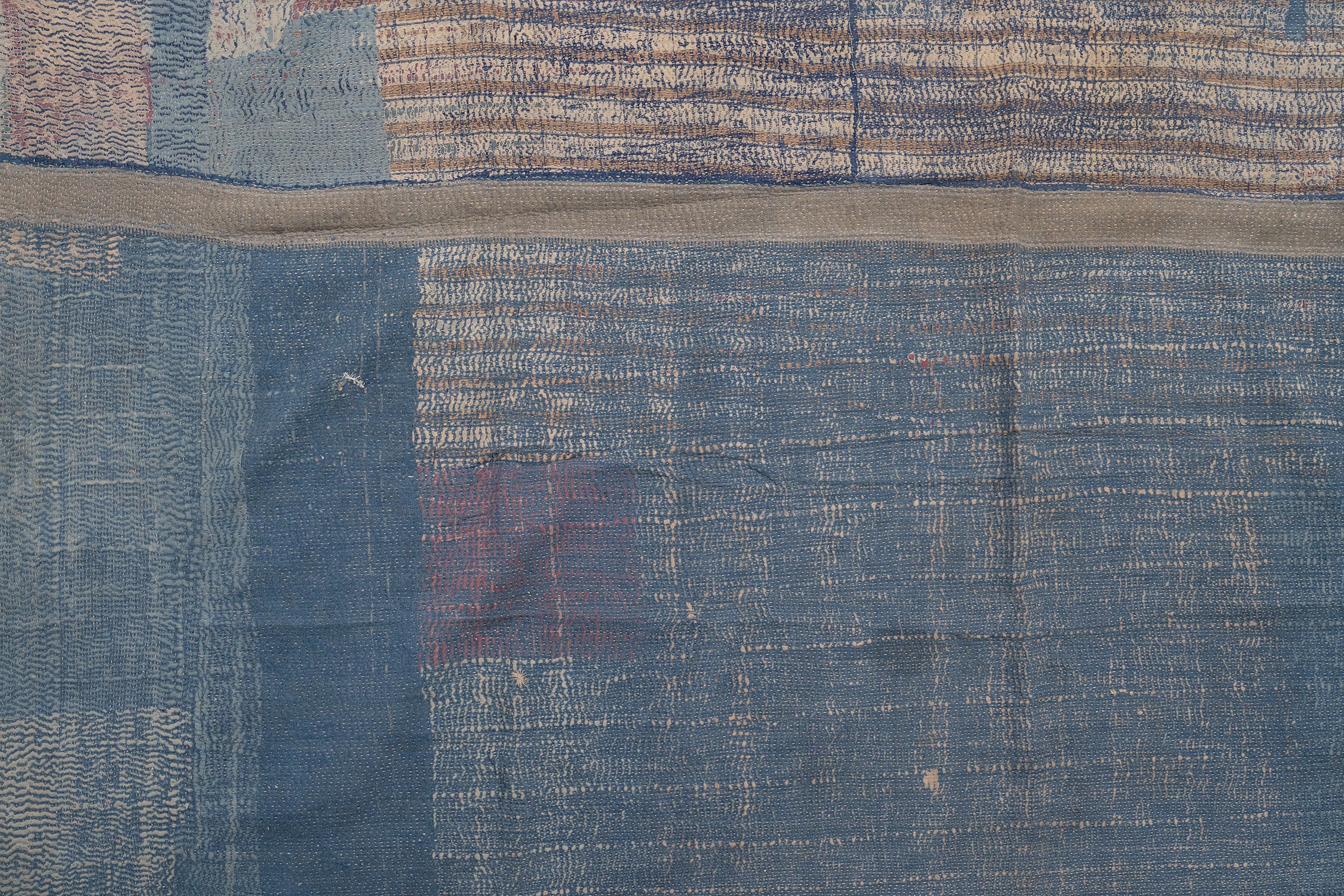 - Reversible: Patched indigo & chambray / Cream & blue bark-stitch