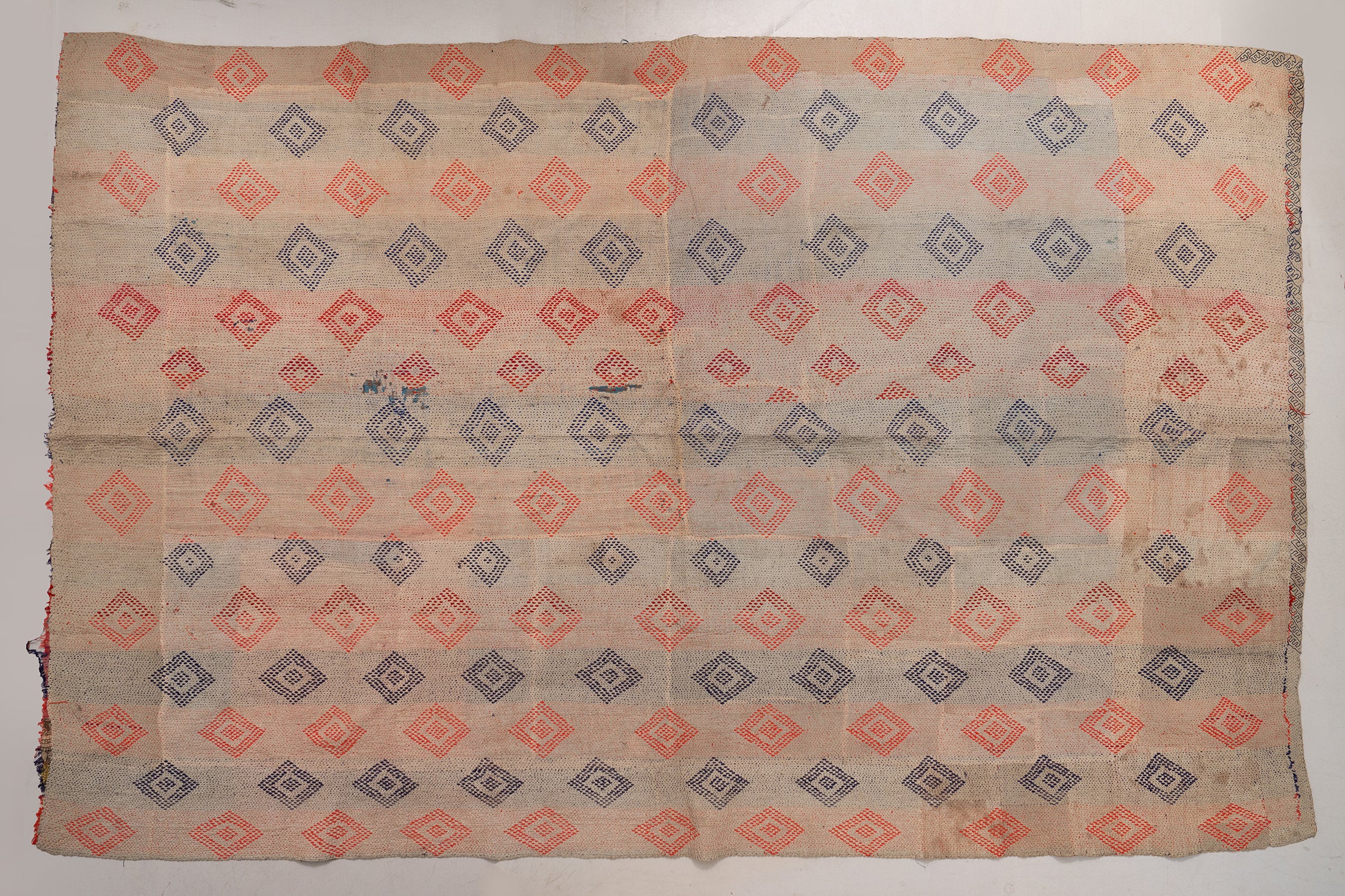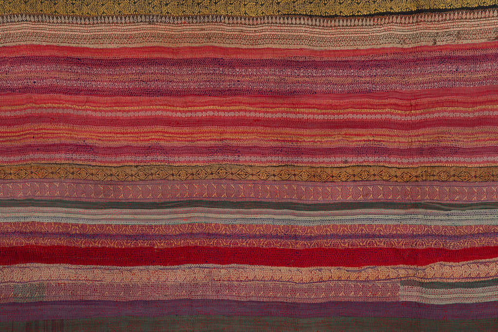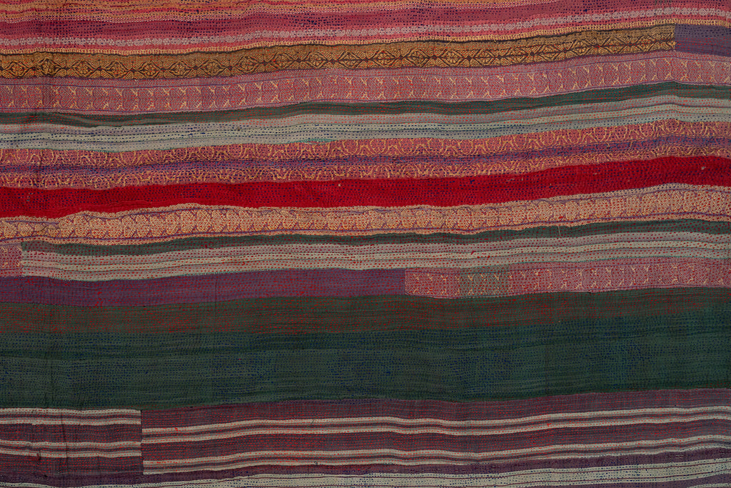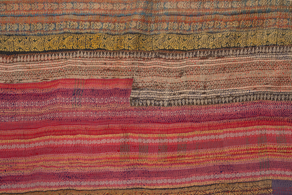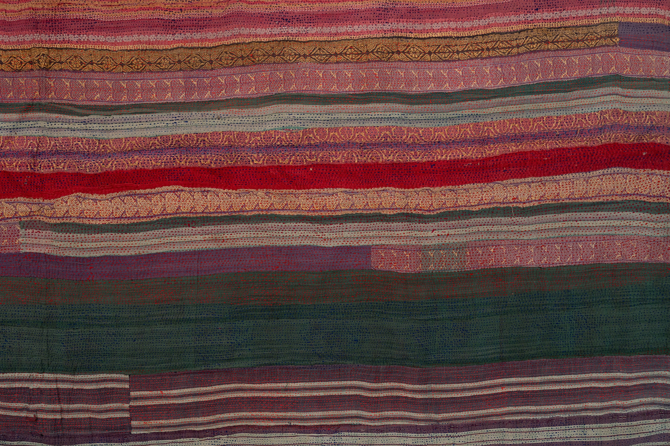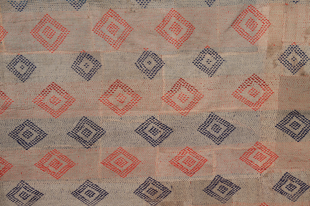 - Reversible: peach diamond outer, multi stripe kantha inner