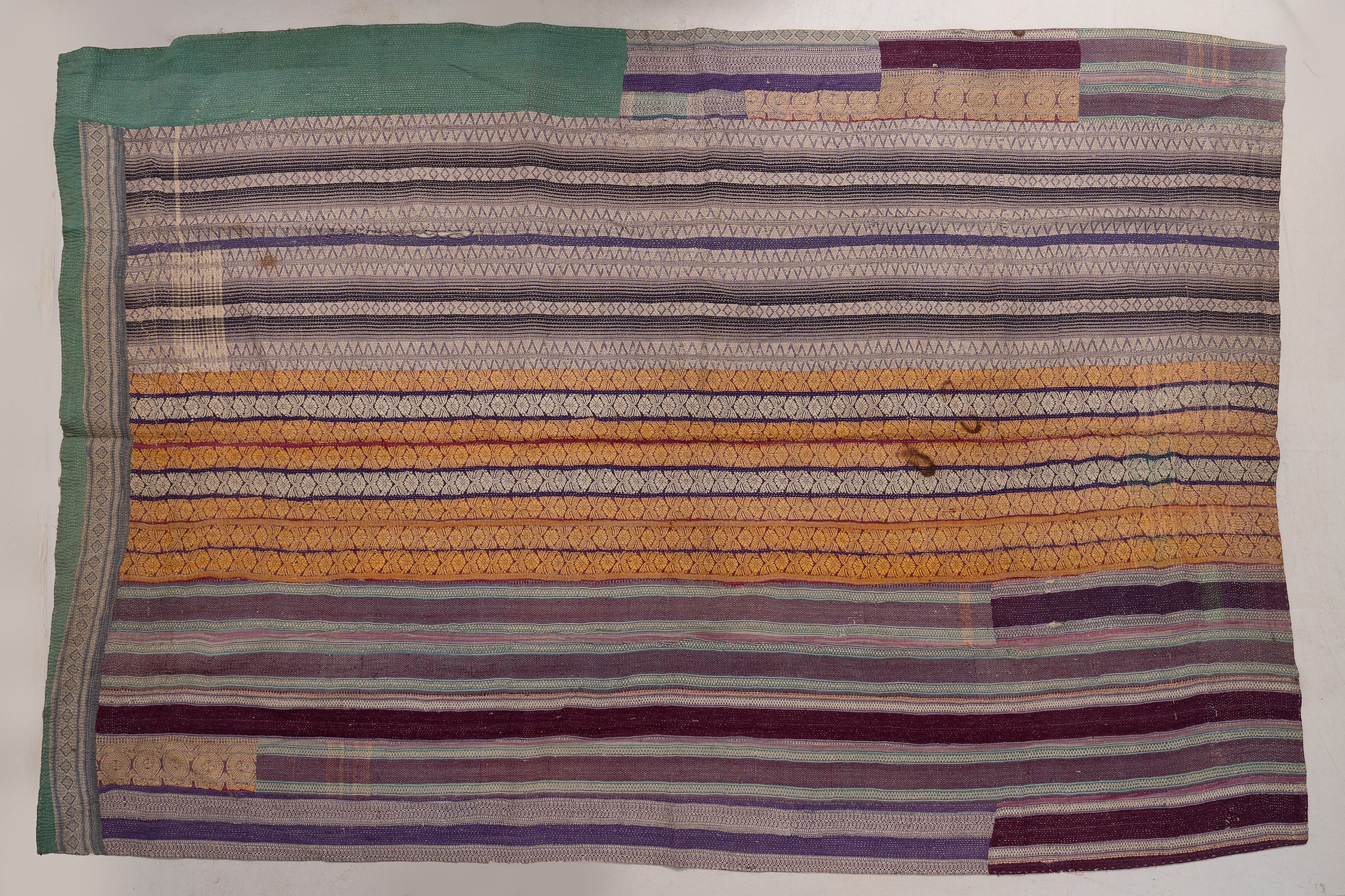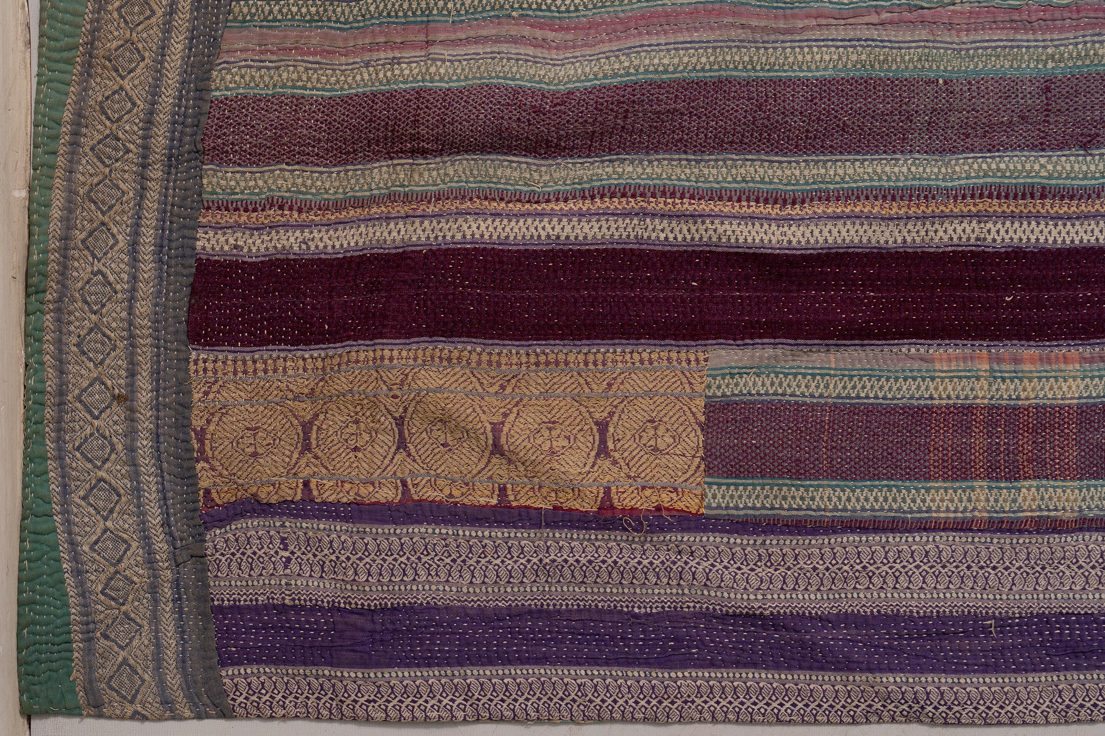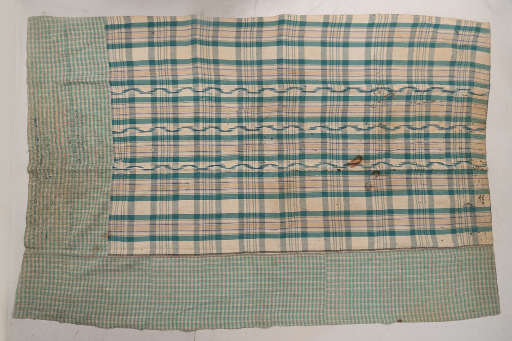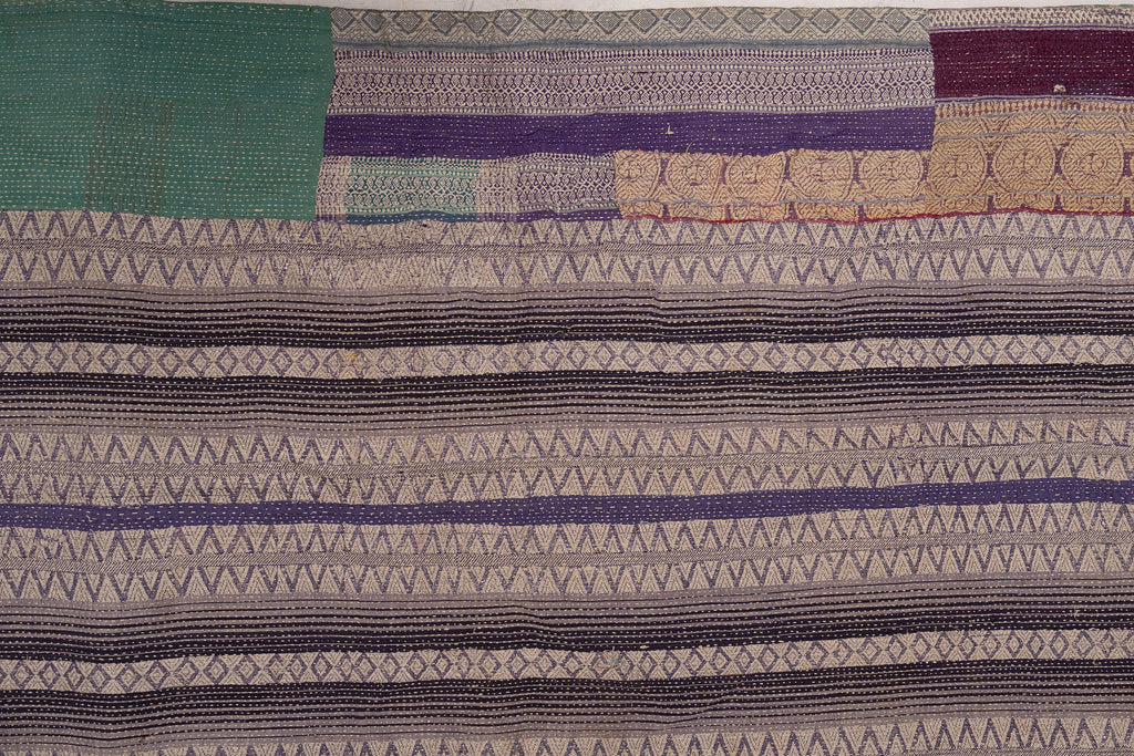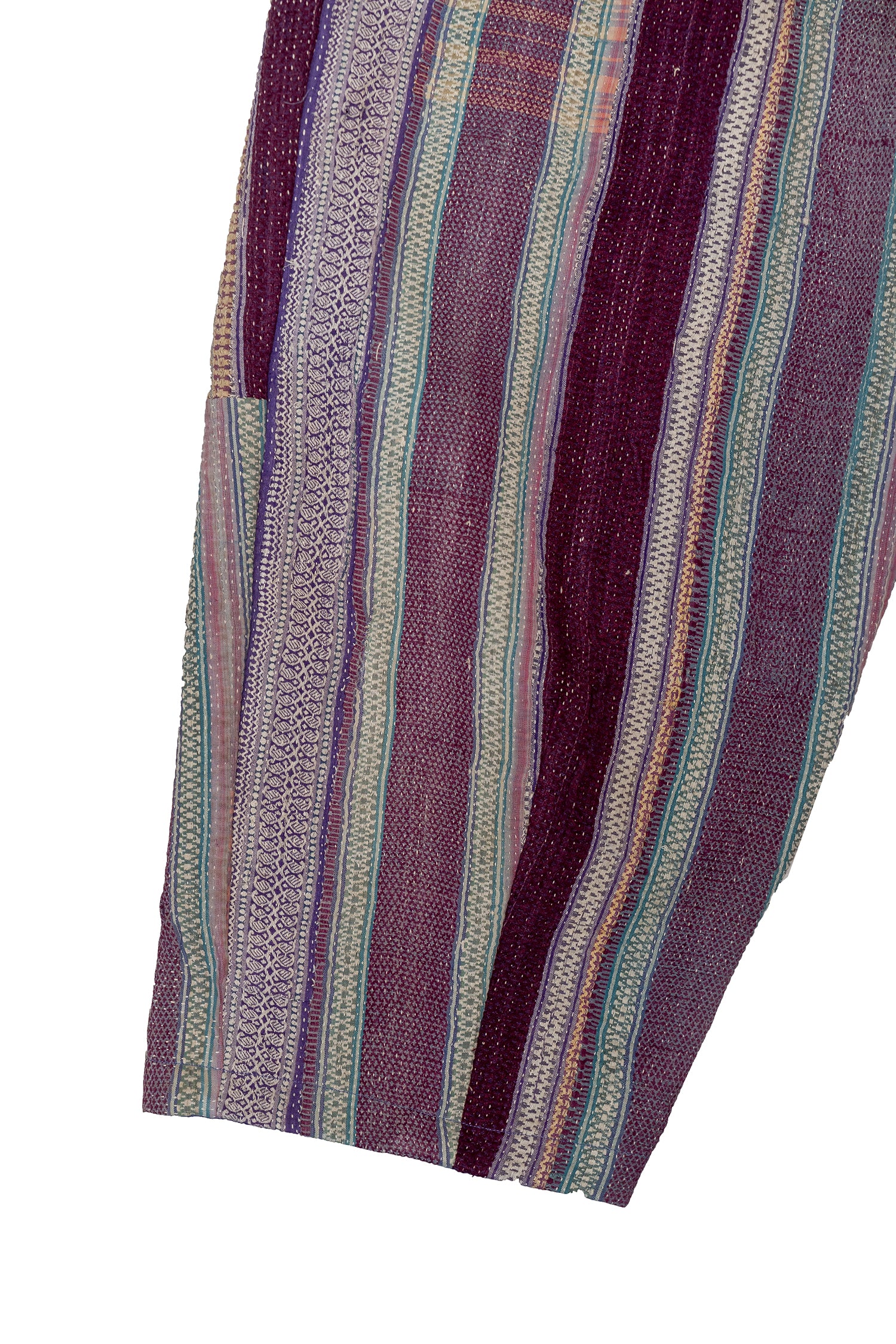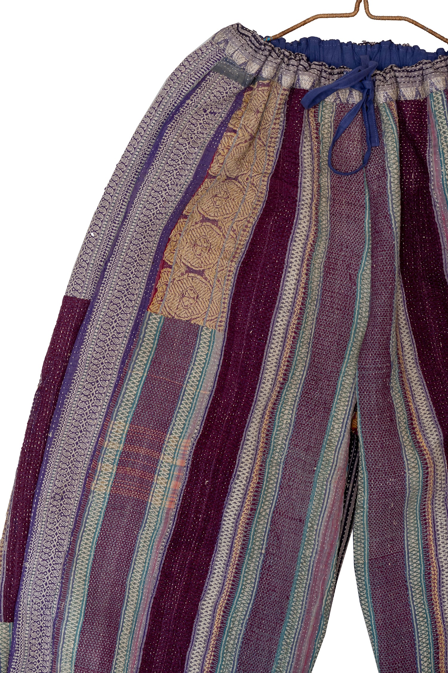 Soft, lived-in, and richly textured, these pants are crafted from vintage kantha quilts in muted grey checks with teal patchwork detailing. Each panel carries years of hand-stitching and quiet artistry, giving the piece its gentle drape and soulful character. Designed for everyday ease, they balance comfort, craft, and the subtle charm of worn-in textiles.