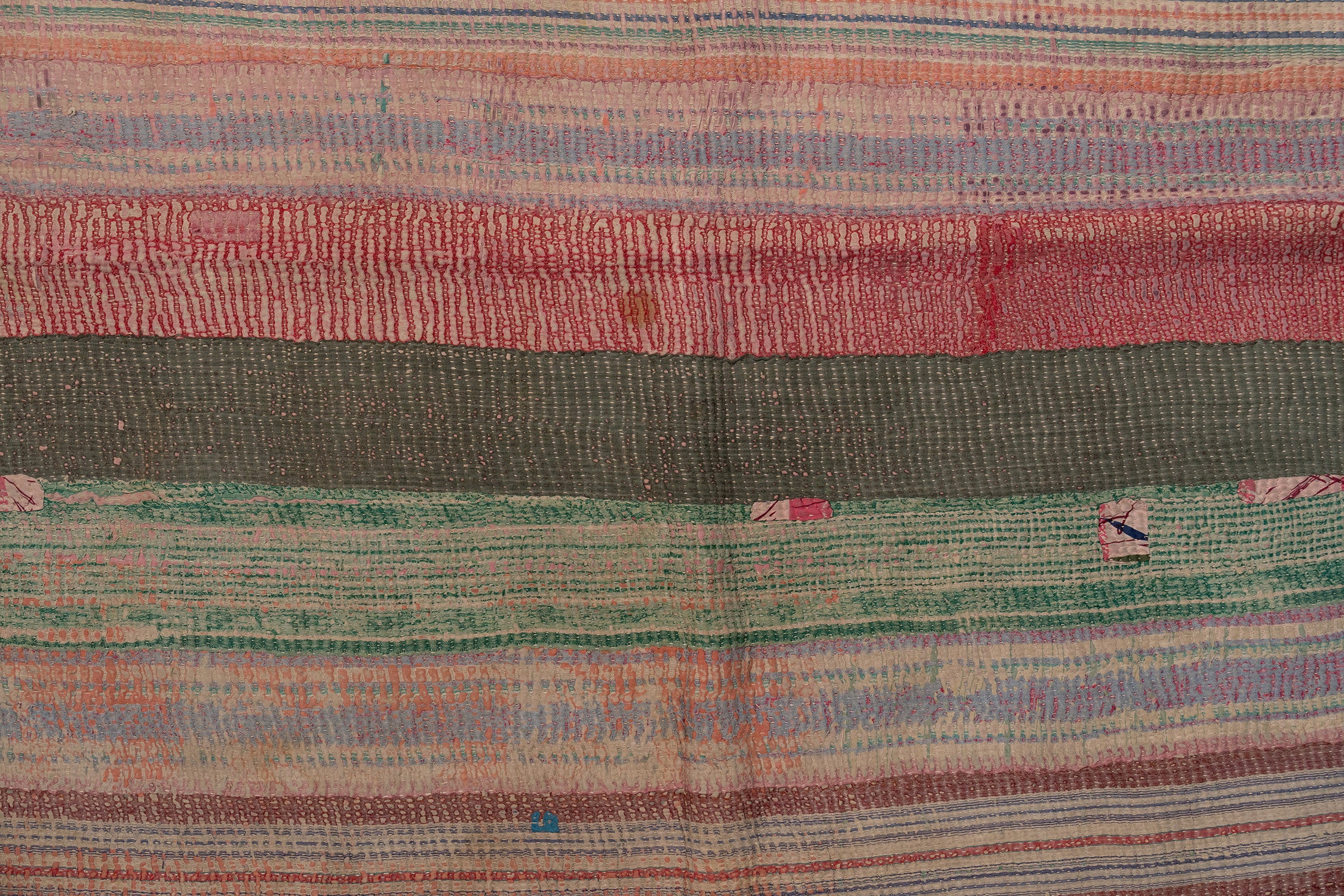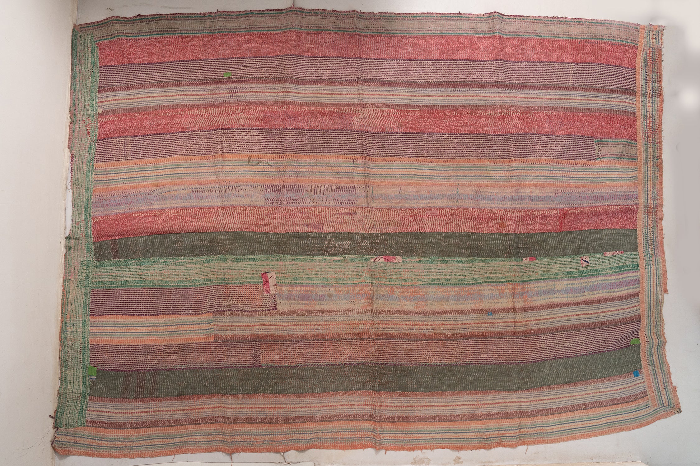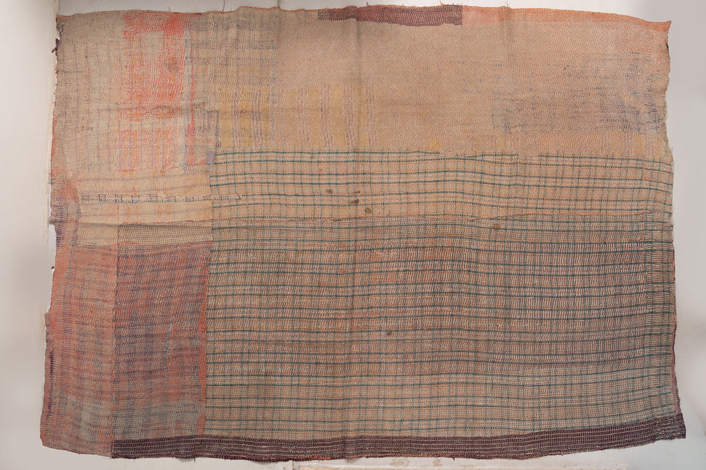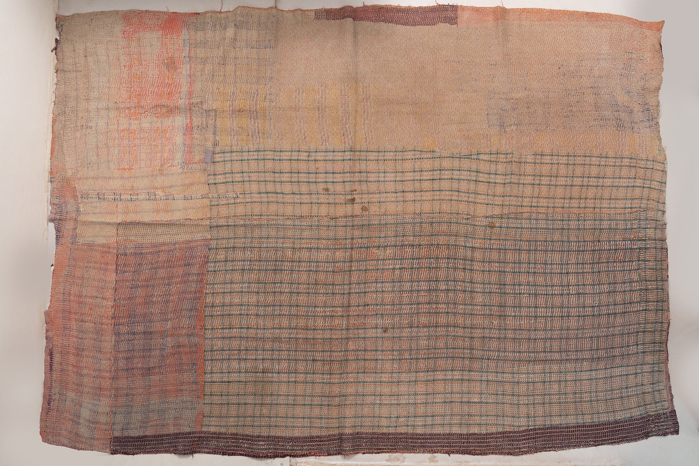Crafted from vintage kantha quilts, these pants blend teal and sand checks with a hand-patched leg, evoking the spirit of slow journeys and handmade beauty. Relaxed, tactile, and effortlessly wearable through the seasons.