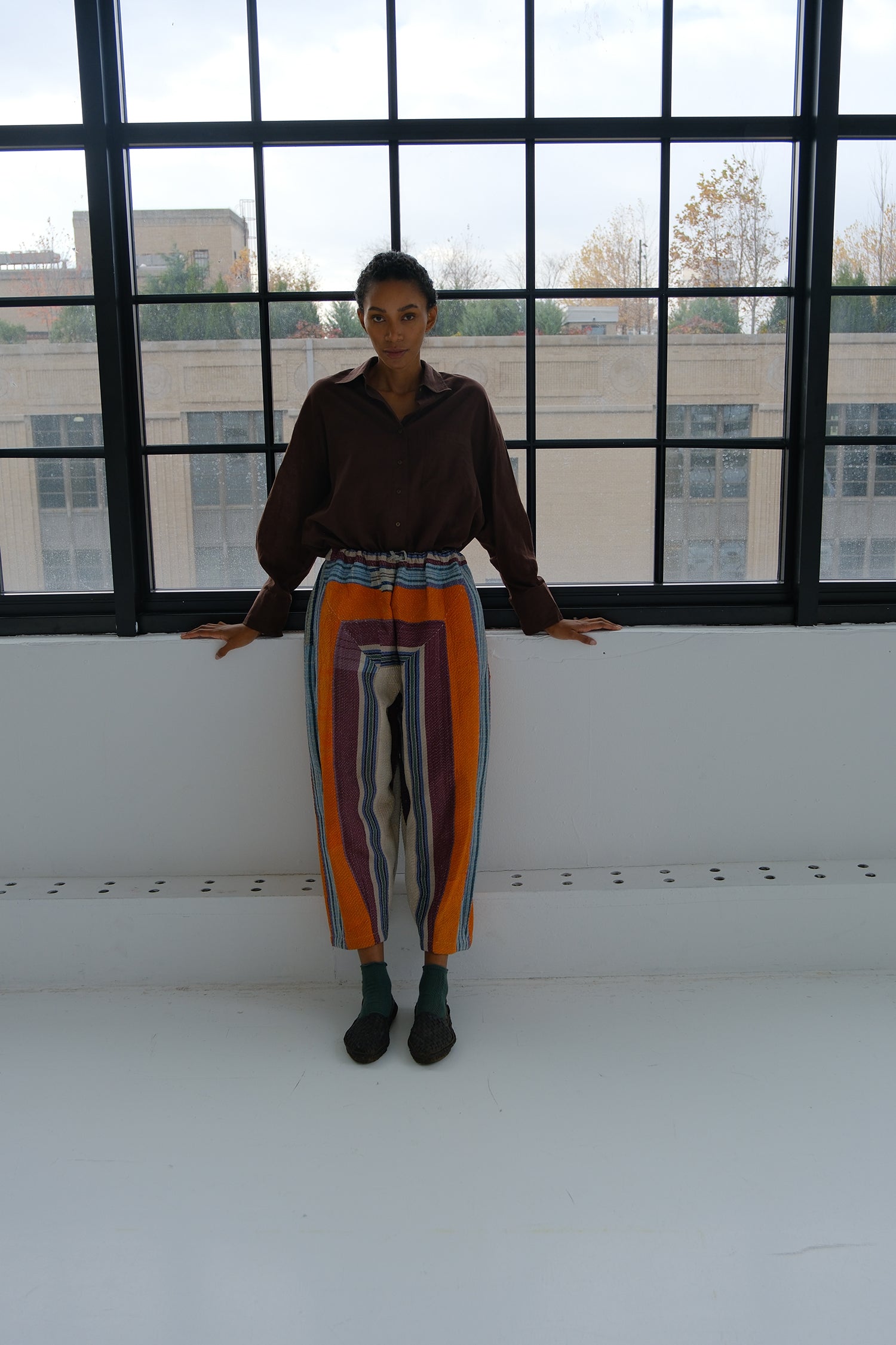 - The pictured pant reflects the style; your pair will be uniquely crafted from the provided vintage textiles.