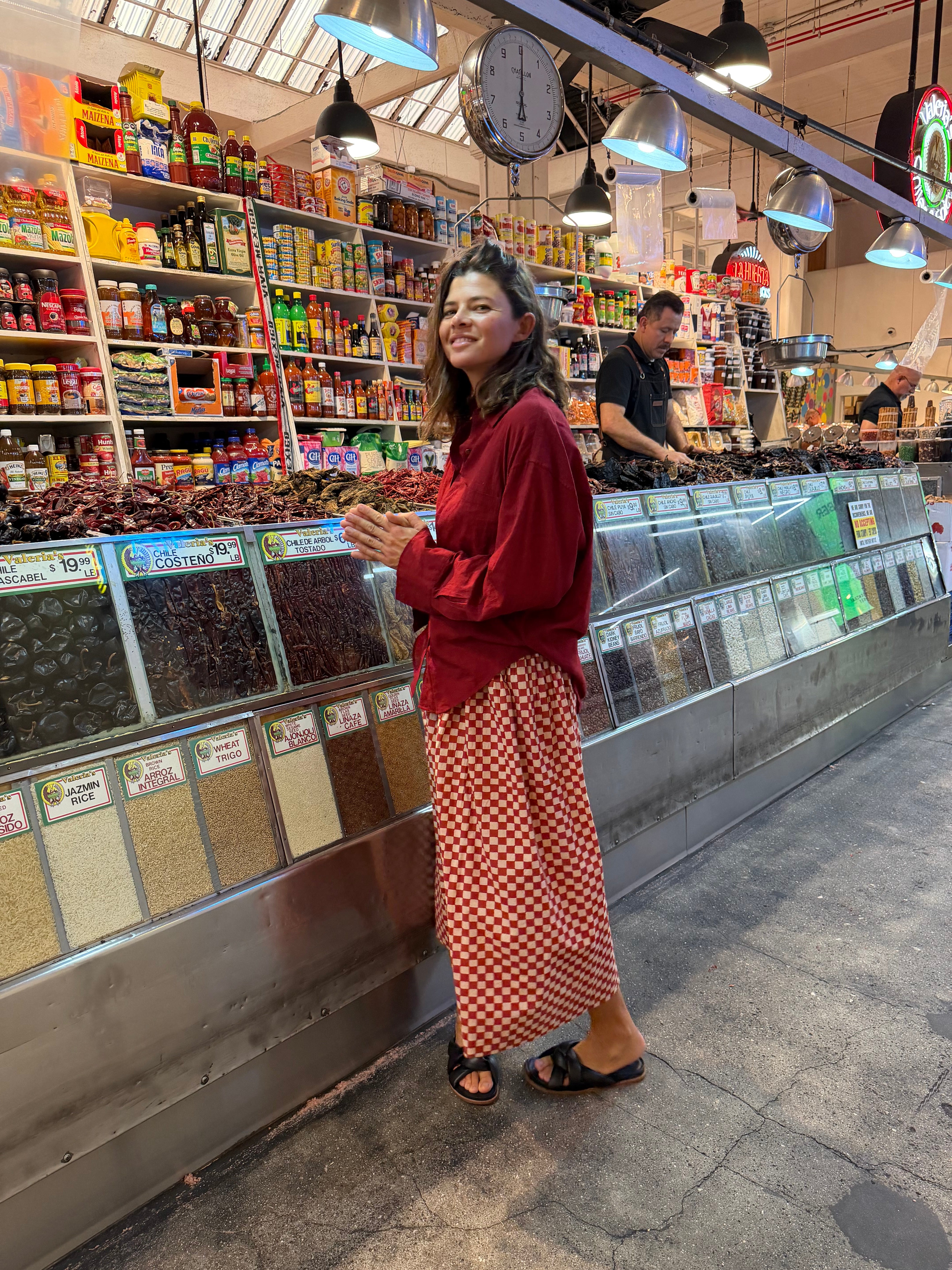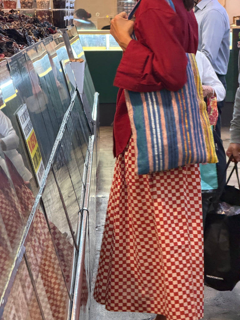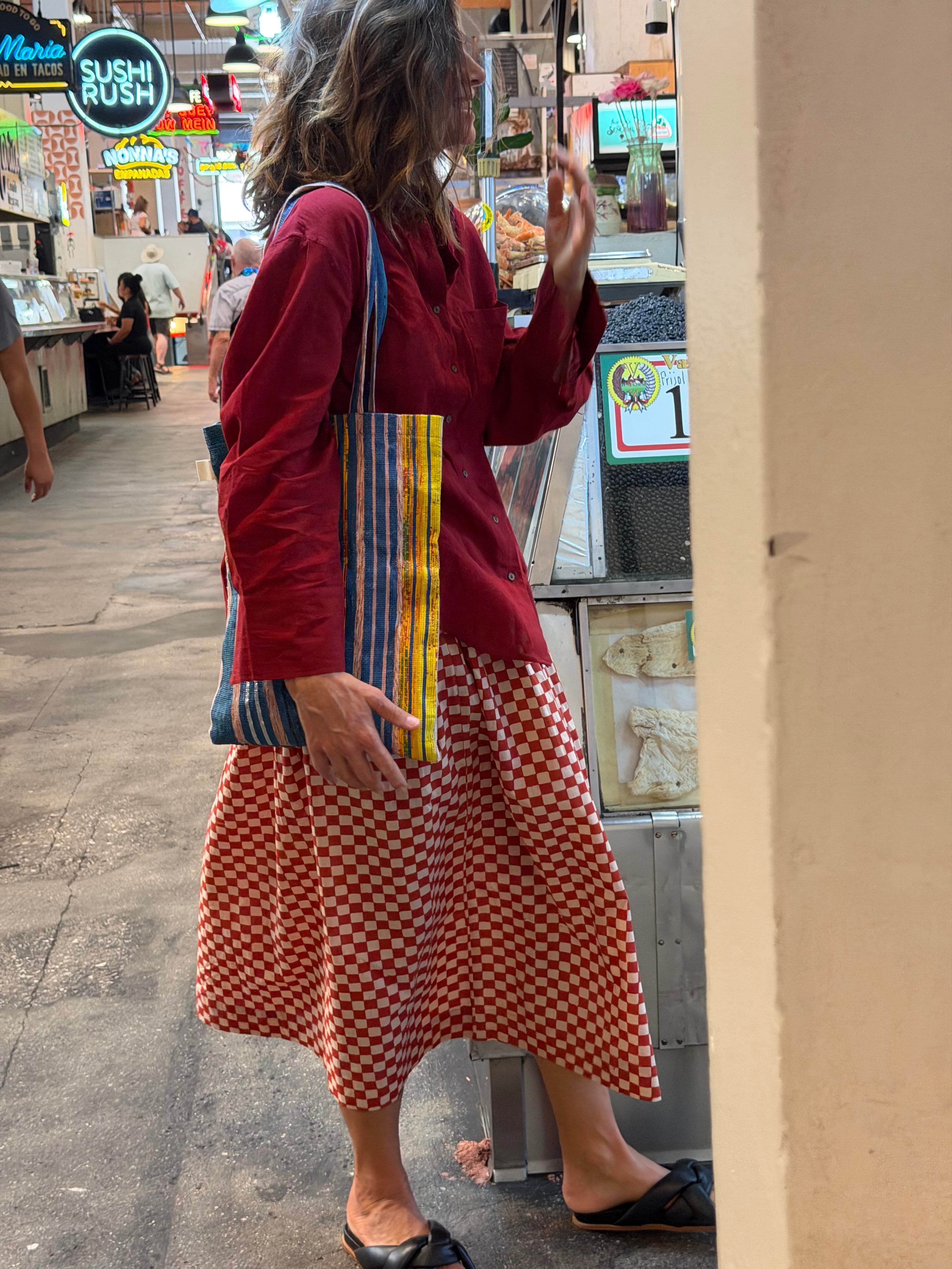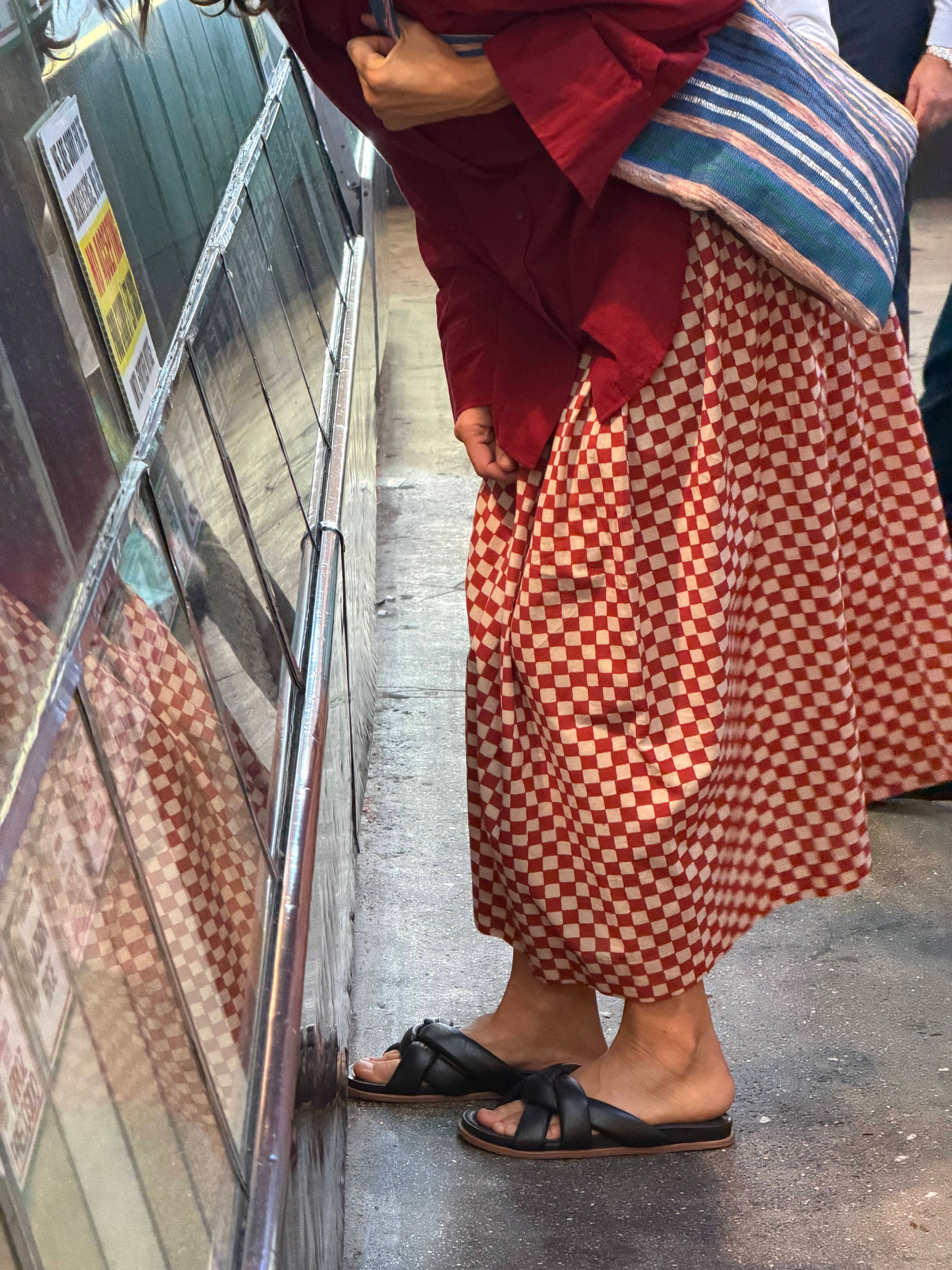 Playful and bold, this midi skirt features a classic checkerboard pattern printed by hand using wooden blocks. The soft, handwoven cotton drapes beautifully, with gentle gathers at the waist for ease and movement. Designed in collaboration with Meredith Peck, it’s an everyday statement rooted in craft.