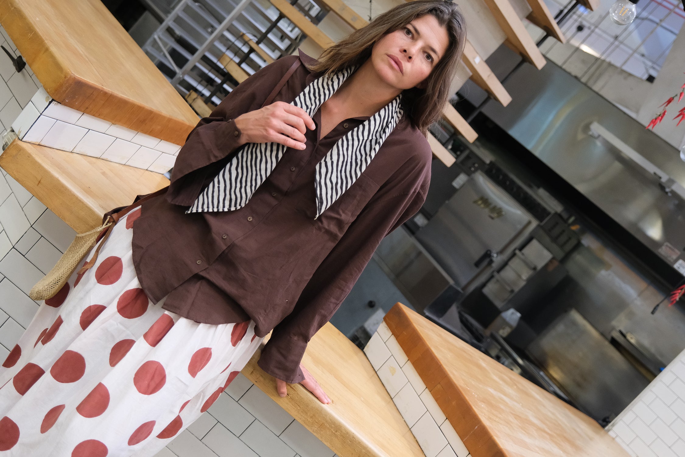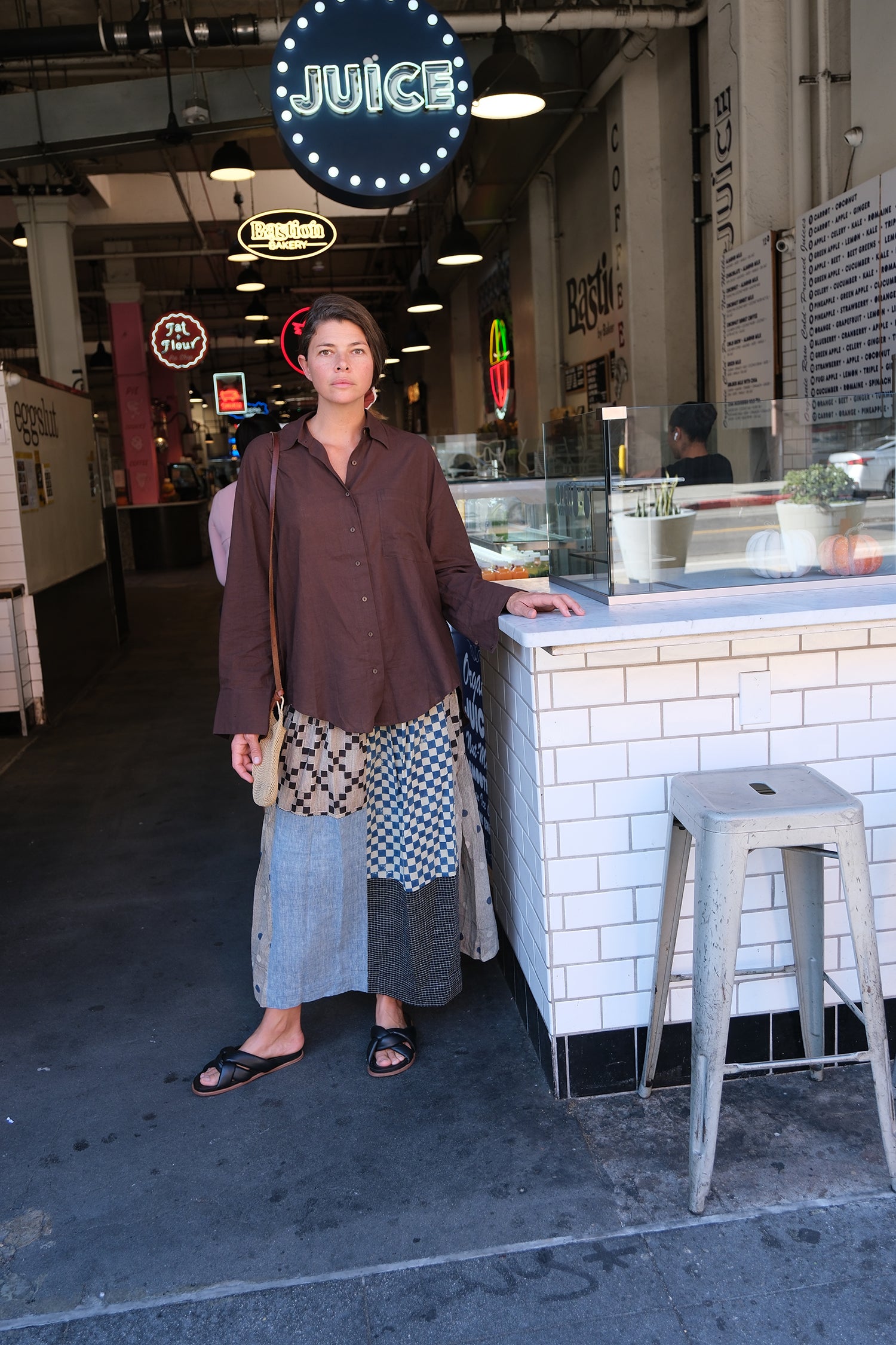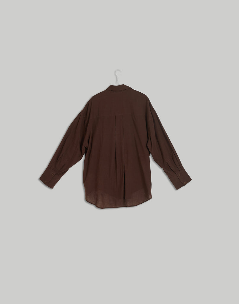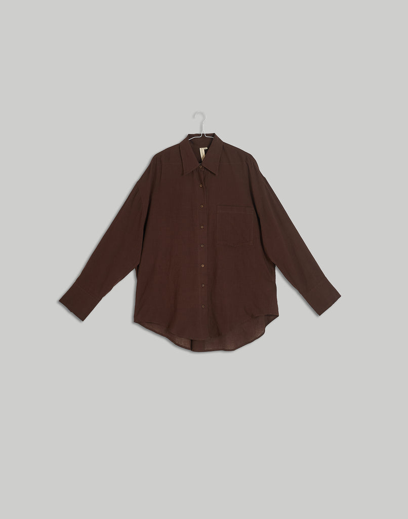 This versatile brown button-down shirt blends comfort with understated elegance. It features a classic pointed collar, a single chest pocket, and a curved hem that dips lower in the back for a touch of laid-back sophistication. The clean button front and cuffed sleeves make it easy to style up or down, whether you're layering for work or lounging on the weekend.