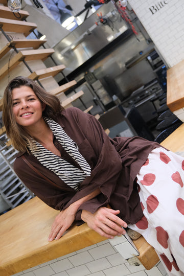 The Zebra Stripe Bandana, is made from hand block printed. Its versatile striped pattern adds a touch of elegance to any ensemble. Wear it around the neck, tie it in the hair, or even loop it through the handles of a tote for an added style.