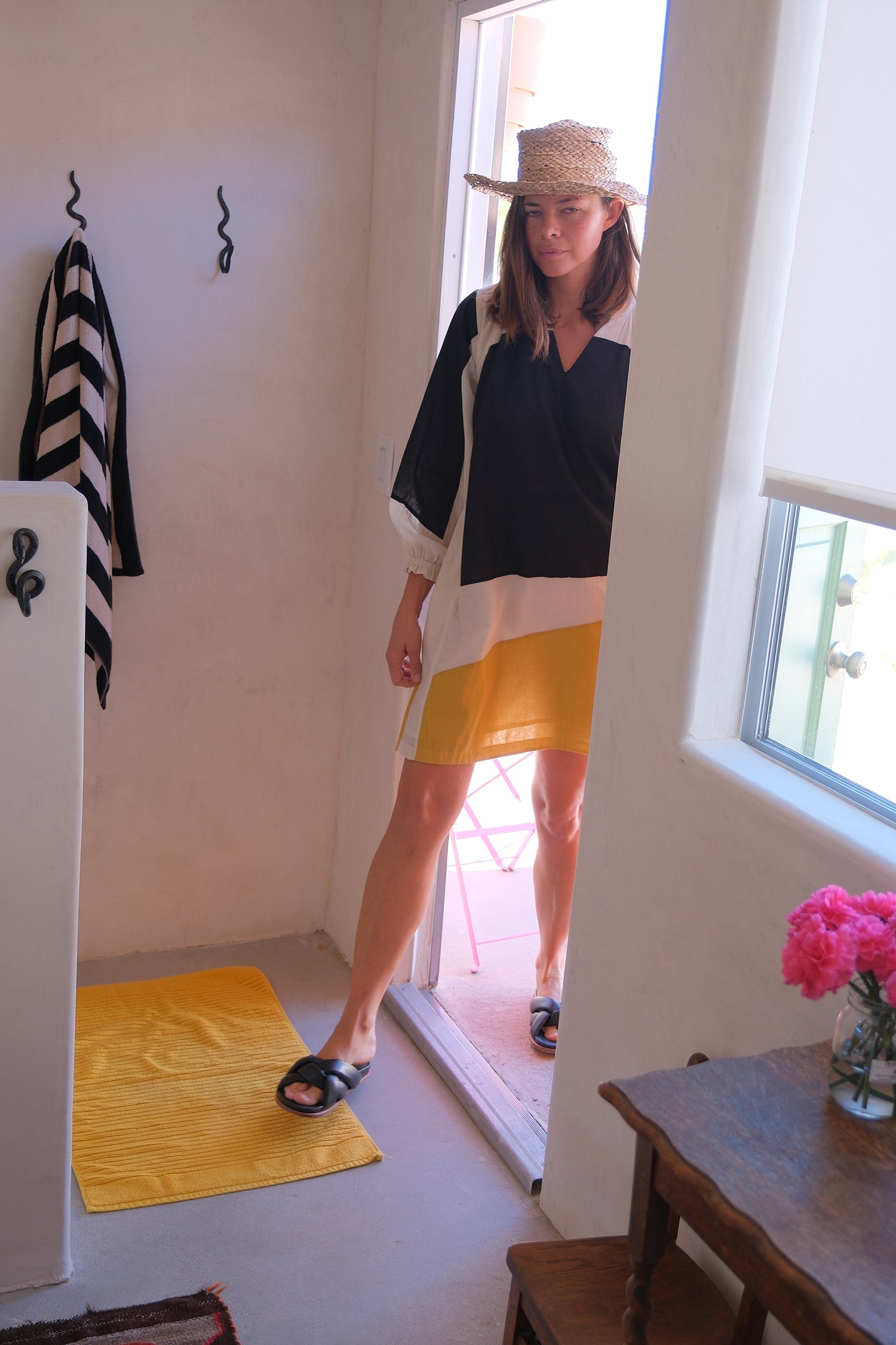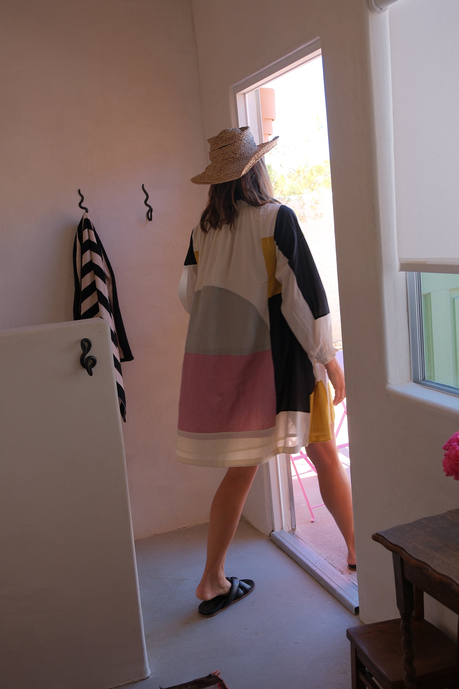 This color-blocked patchwork dress is tailored from soft and natural cotton fabric. It's a modern minimalist piece that exudes free-flowing charm. The unique unstructured shapes, vintage-inspired cuffs with frill details, and gatherings around the neckline make it versatile for any occasion. Whether you're planning a spring holiday or a casual weekend outing, this dress is the perfect choice for a stylish and effortless look.